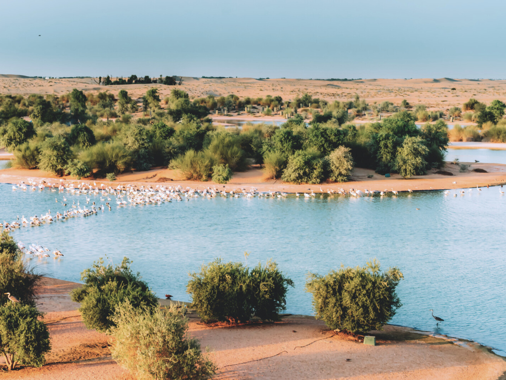 Man-made lakes in the desert where you’ll spot flamingos, swans, and dozens of bird species.
