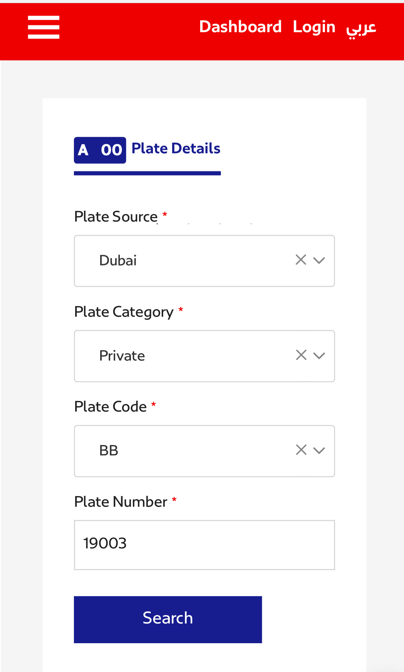 2️⃣ On the page, choose the search option Plate Details. Enter your car details: