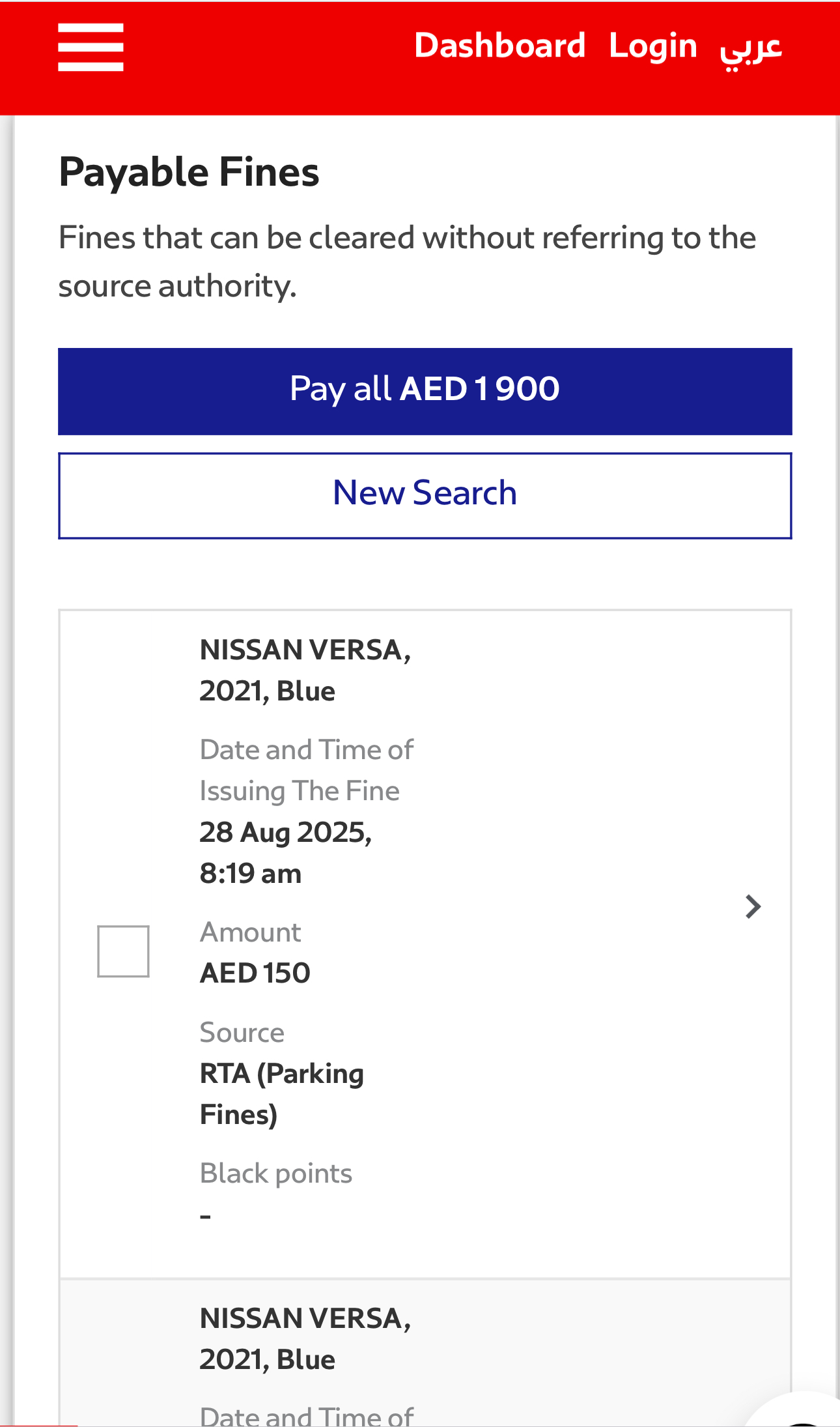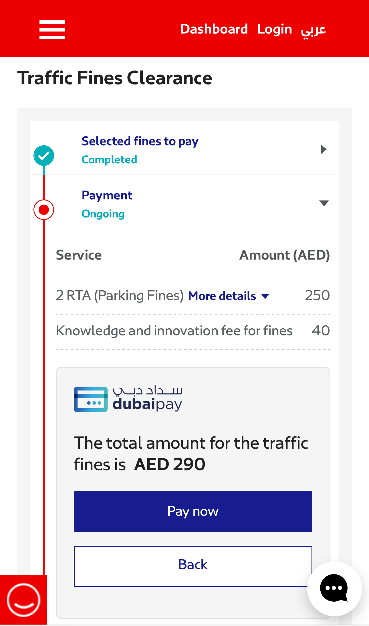This is a mandatory government fee charged per fine to cover RTA IT services and transaction processing. Even if you pay multiple fines at once, the 20 AED fee is applied to each fine separately. In other emirates (like Abu Dhabi or Sharjah), this fee may differ or not apply.