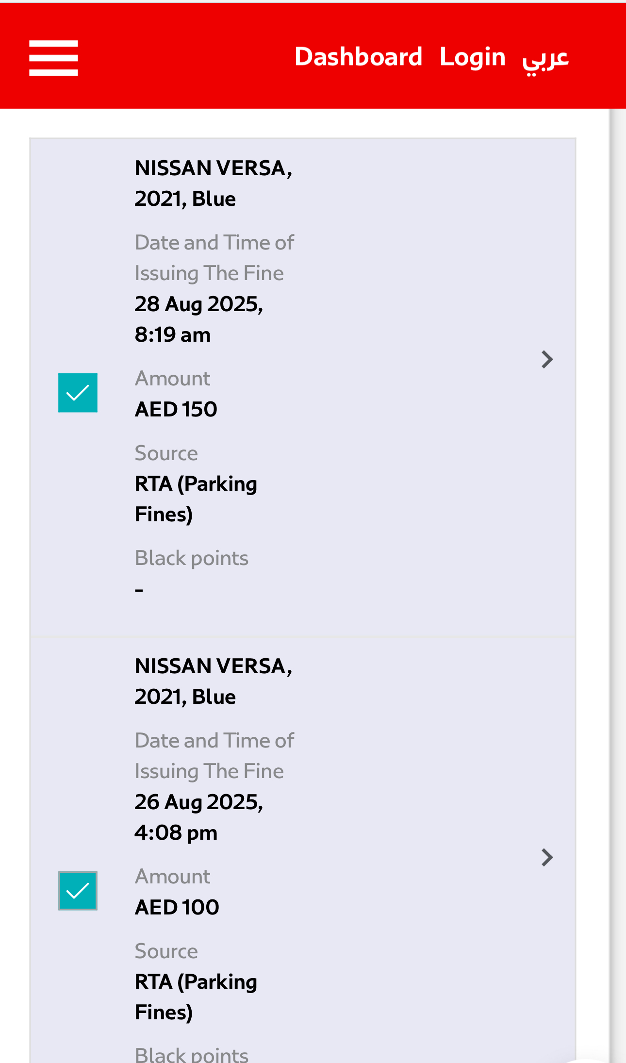 4️⃣ Select the fine you want to pay and click Pay.